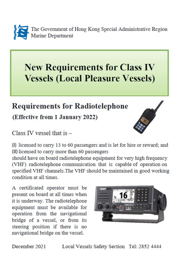 New Requirements of Radiotelephone for Class IV Vessels(Local Pleasure Vessels)