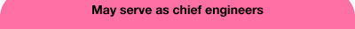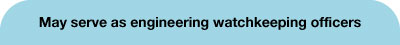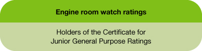 The engineering department is responsible for the maintaining all machinery and electrical appliances onboard, as well as ensuring that the vessel has sufficient fuel reserves. The ranks of engineering officers include chief engineers, second engineers and engineering watch keeping officers.