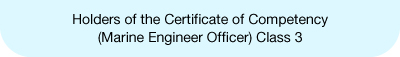 To become a marine engineer officer, one must first complete recognised maritime courses and serve as a cadet in the engineering department to receive in-service training. After completing workshop skills trainings and obtaining sufficient sea time, the cadet may apply for the respective examination for the Certificates of Competency (Marine Engineer Officer) Class 3, and be eligible to serve as an engineering watch keeping officer. With the accumulation of more sea time, the officer may apply for the examinations for the Class 2 and then Class 1 certificates in a gradual manner. Upon obtaining the required certificate, the officer is eligible to serve as a chief engineer.